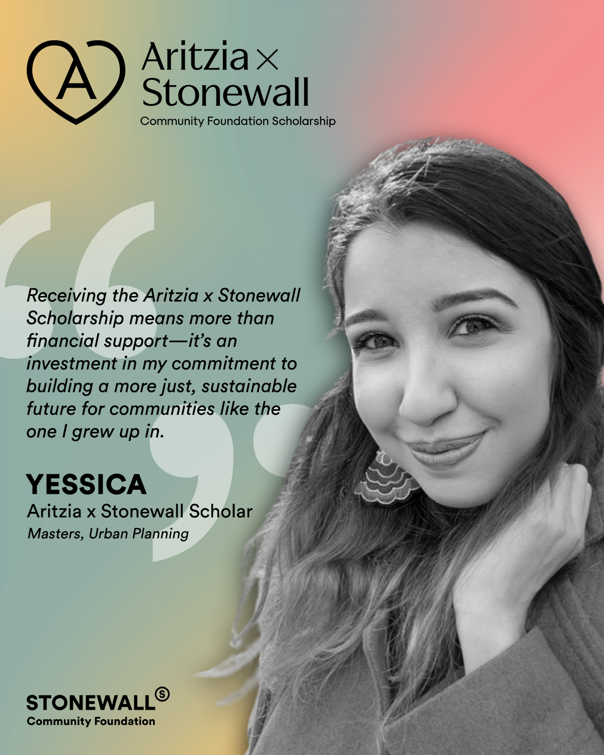 Launched in 2021, the Aritzia x Stonewall Community Foundation Scholarship has become a vital source of support for women-identified LGBTQ+ students enrolled in undergraduate or graduate programs across the US. To be eligible, students must be studying business, fashion design, retail management, or social justice advocacy, and planning to work in one of these fields after graduation. Each year, the scholarship provides meaningful financial support to several students, easing the burden of tuition and educational expenses and allowing recipients to focus more fully on their studies, leadership development, and long-term goals. For many of our scholars, this investment represents more than financial relief: it is a powerful affirmation that their identities, talents, and aspirations matter.