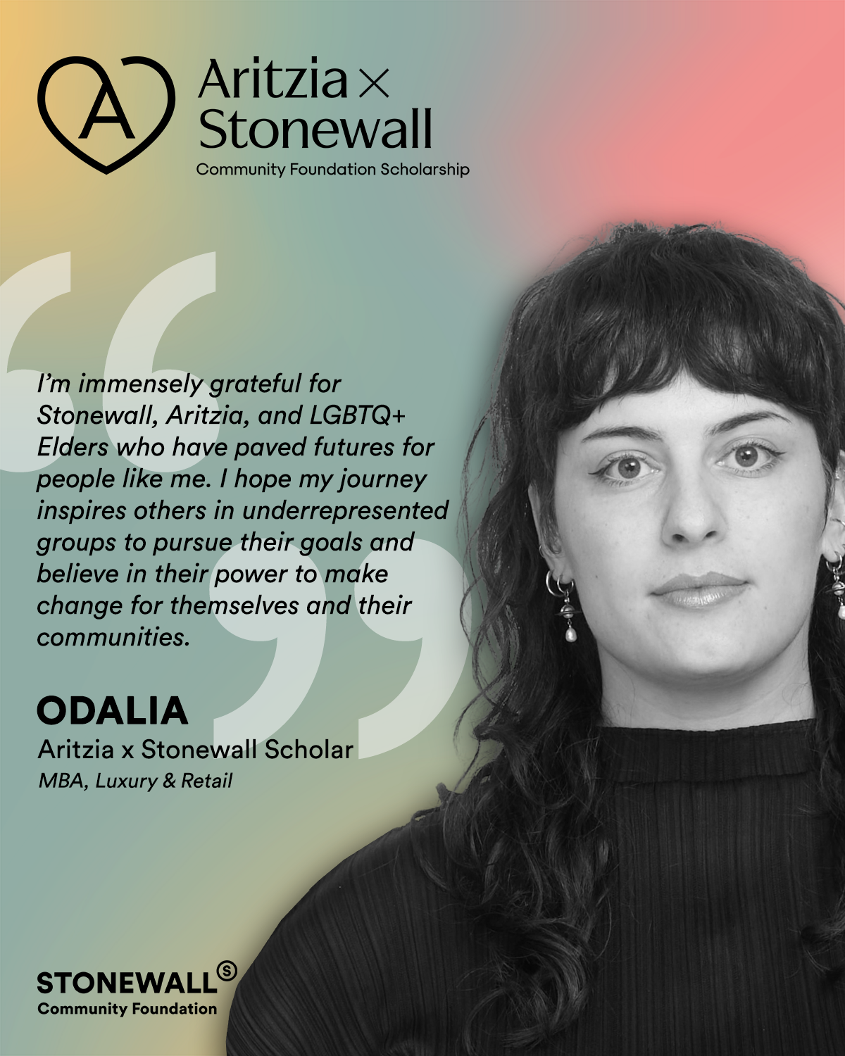 Aritzia’s partnership with Stonewall reflects a shared commitment to advancing inclusion and creating pathways for LGBTQ+ women to thrive. Together, we’re supporting students who are well-positioned to challenge systems, build more equitable industries, and advocate for justice and care in meaningful ways. This brilliant collaboration also underscores the key role that values-aligned corporate partners play in shaping a more inclusive future.
